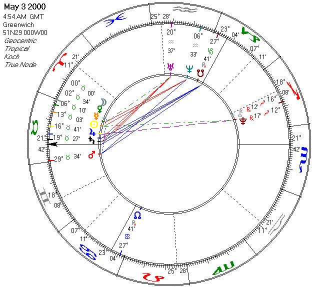 Conjunction of all of the Visible Planets in Tropical Taurus as the Moon enters Taurus at: 4:54am GMT on May 3, 2000