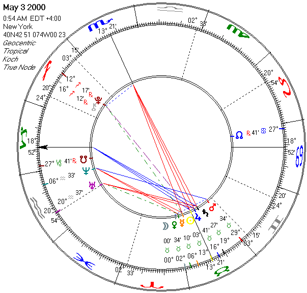 Conjunction of all of the Visible Planets in Tropical Taurus as the Moon enters Taurus at: 12:54am EDT on May 3, 2000